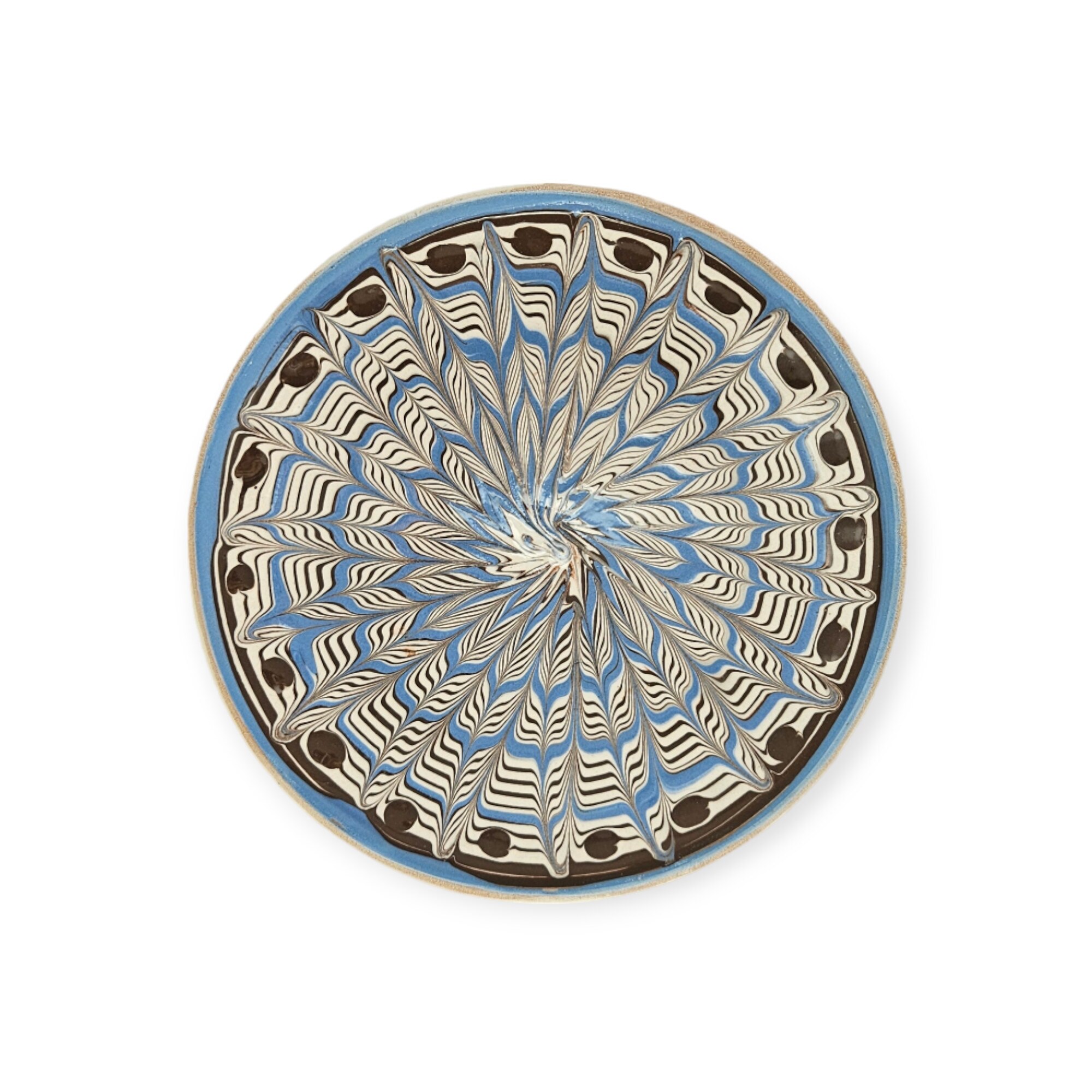 Farfurie CERAMICA DE HOREZU model Coadă de Păun, albastru, 15cm